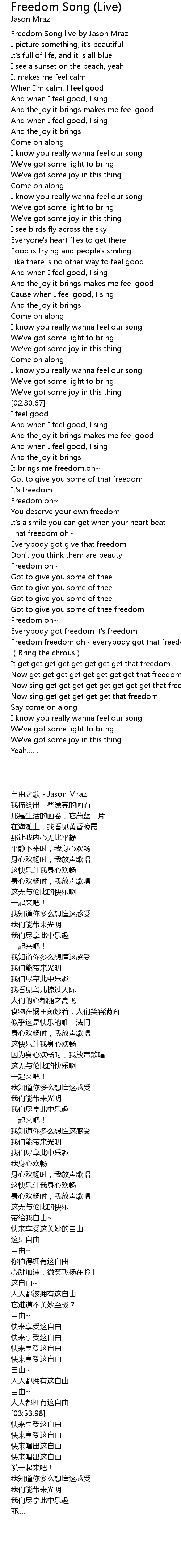 | [00:03.51] | Freedom Song live by Jason Mraz |