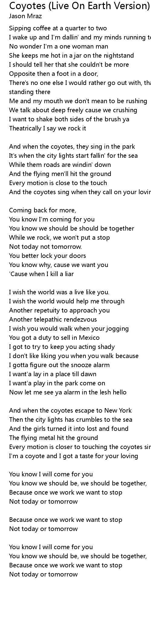 Every motion is closer to touching the coyotes singing |