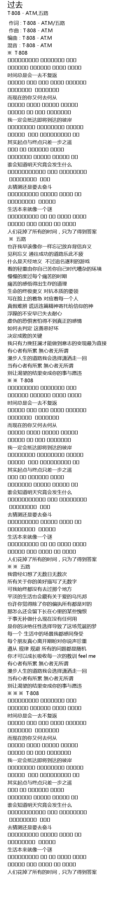 | [00:00.000] | 作词 : T·808 - AT.M/五路 |