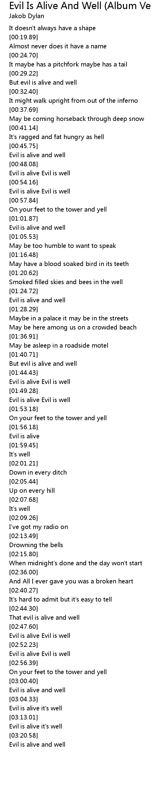 Evil is alive Evil is well |