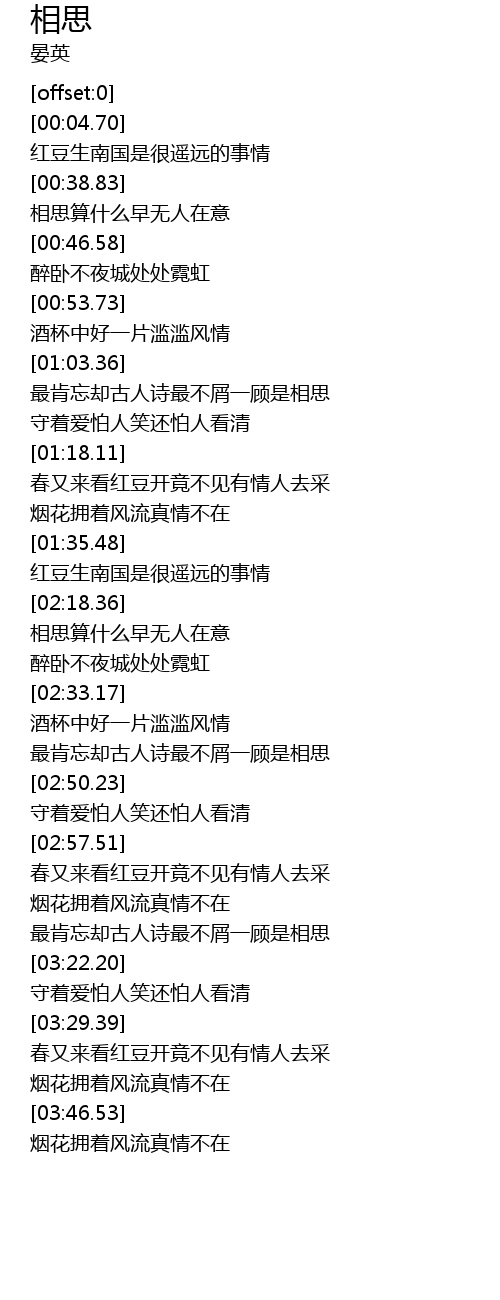 | [00:32.32] | 红豆生南国是很遥远的事情 |