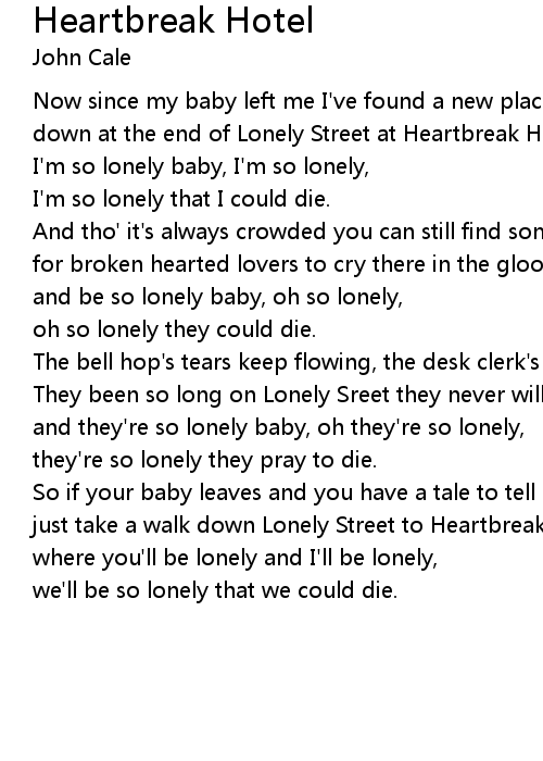 | just take a walk down Lonely Street to Heartbreak Hotel | |