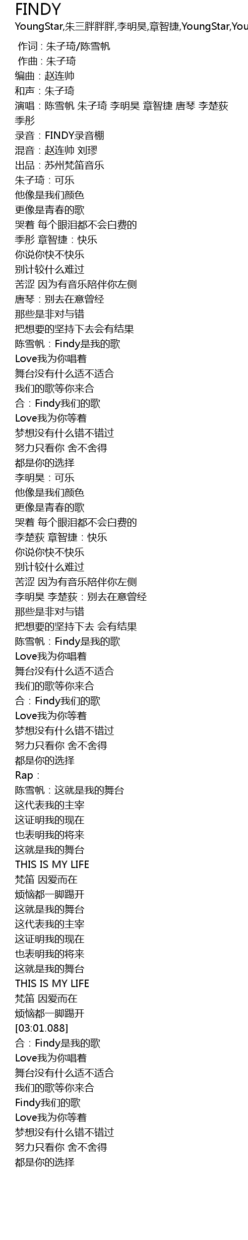 | [02:13.167] | 陈雪帆:Findy是我的歌 |