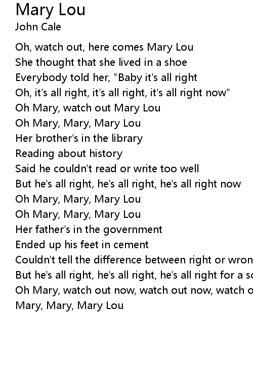 Oh Mary, watch out now, watch out now, watch out now Mary Lou |