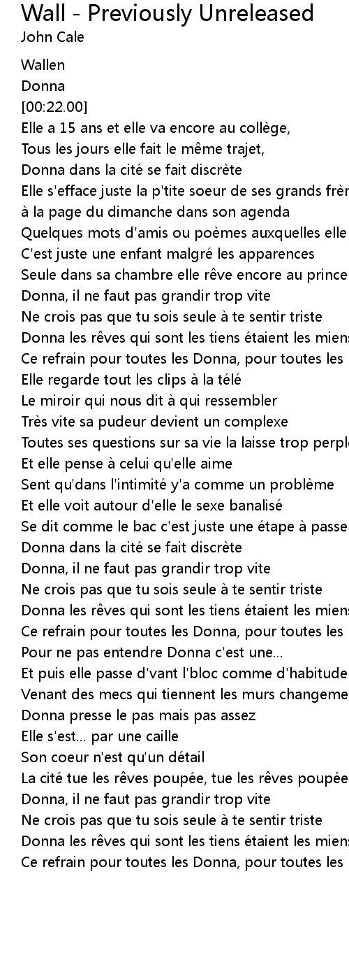 | [02:21.00] | Pour ne pas entendre Donna c'est une... |