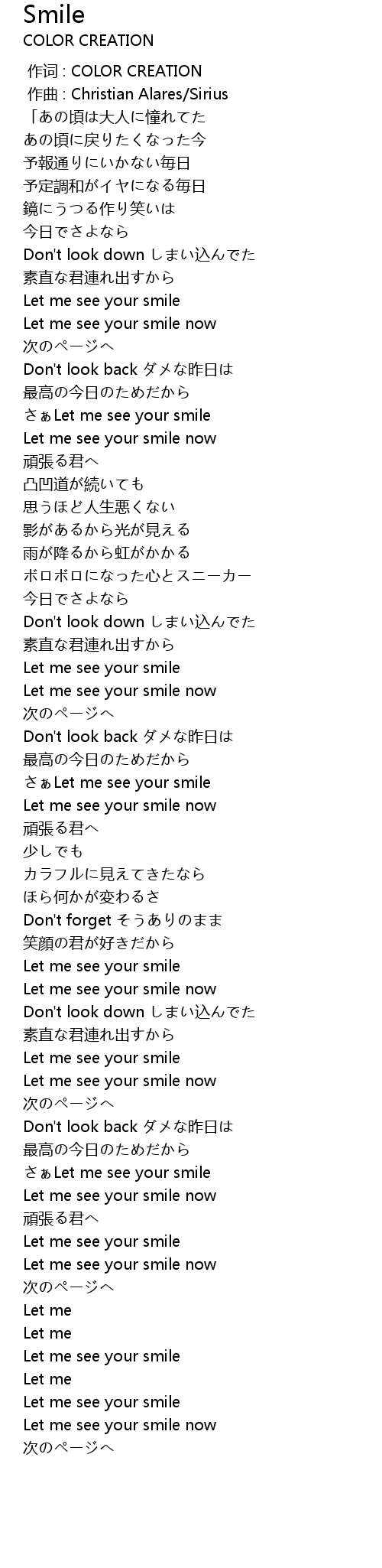 | [02:23.32] | さぁLet me see your smile |