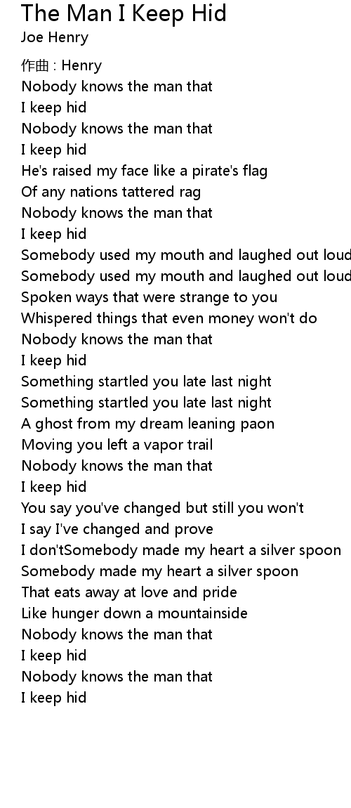 | Song | The Man I Keep Hid |