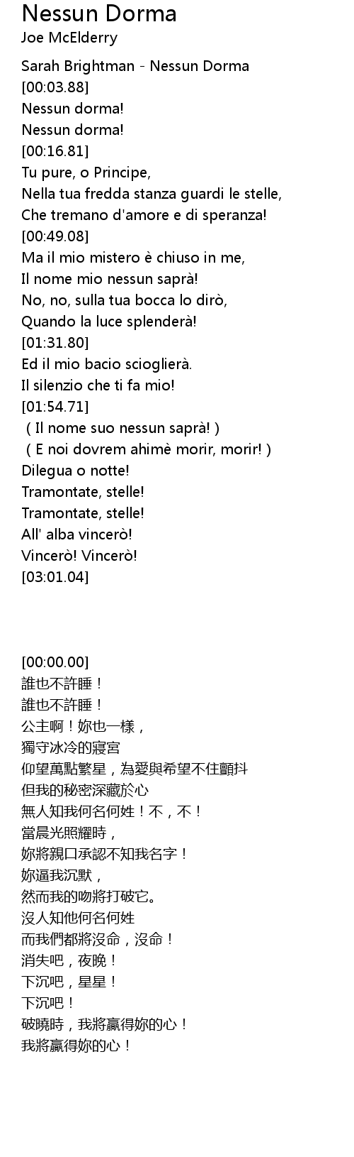 | [00:00.00] | Sarah Brightman - Nessun Dorma |