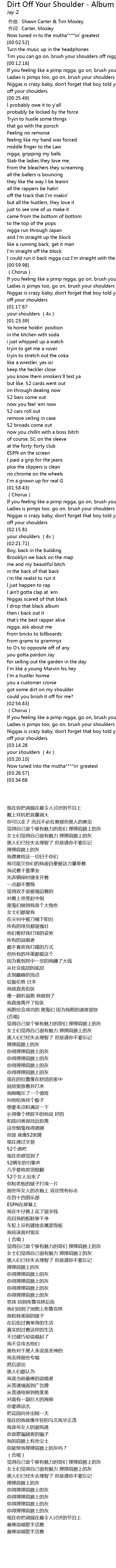 | [00:19.89] | Niggas is crazy baby, don't forget that boy told you, get that dirt off your shoulders |