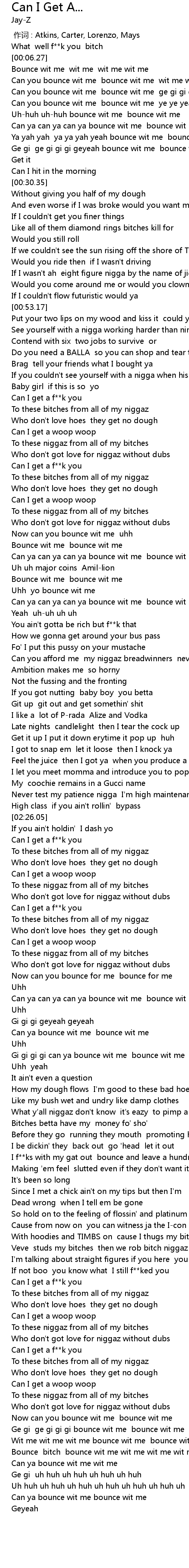 | [04:14.17] | Bounce bitch bounce wit me wit me wit me wit me |