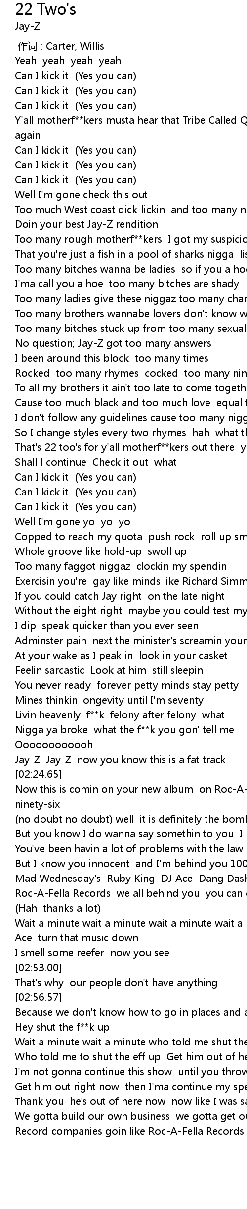 | [02:21.41] | Jay-Z Jay-Z now you know this is a fat track |
