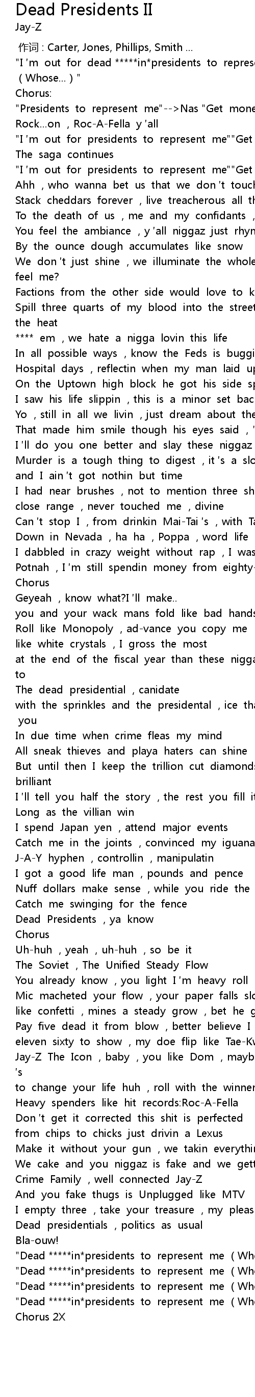| [03:19.05] | "Dead *****in*presidents to represent me (Whose...)" |