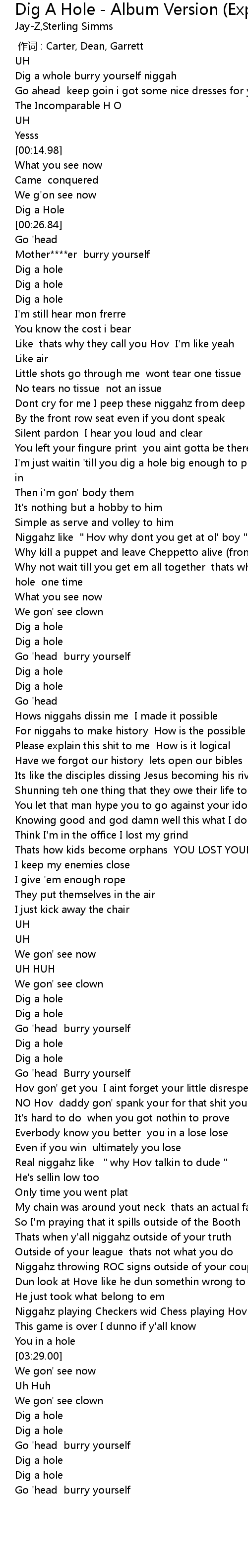 | [02:56.02] | Real niggahz like "why Hov talkin to dude" |