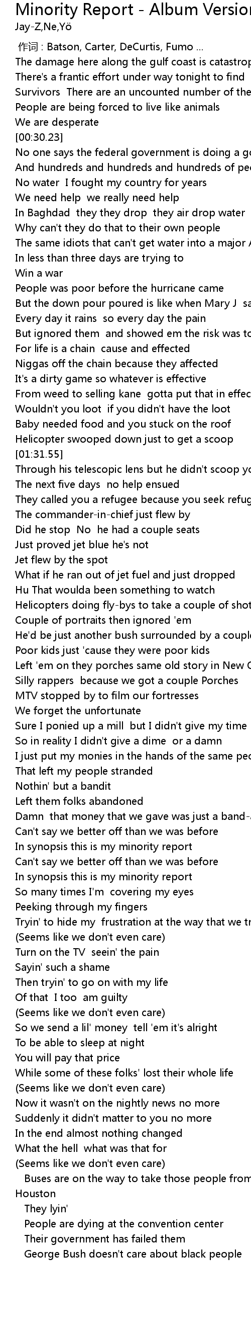 | [03:46.81] | George Bush doesn't care about black people |