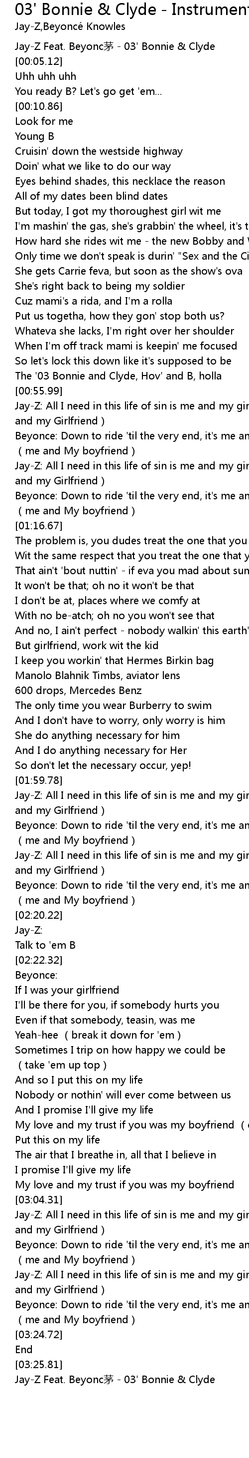 | [03:26.52] | JayZ Feat. Beyonc máo 03' Bonnie Clyde |