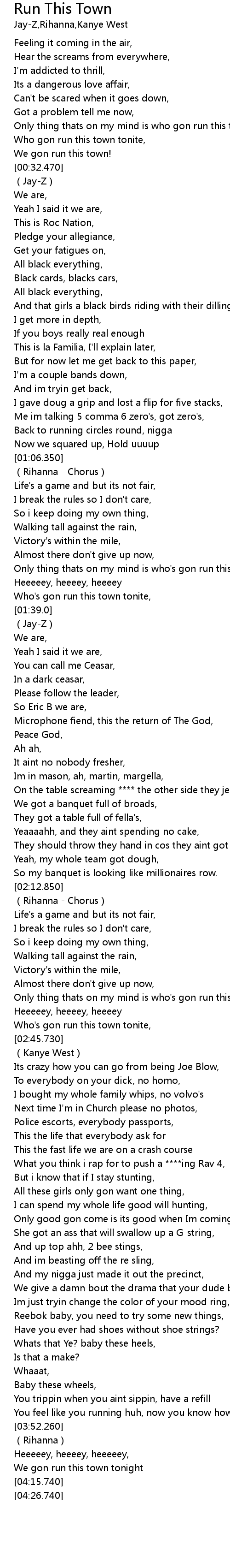| [04:12.740] | We gon run this town tonight |