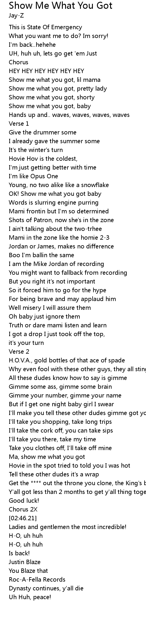 Show me what you got, lil mama |