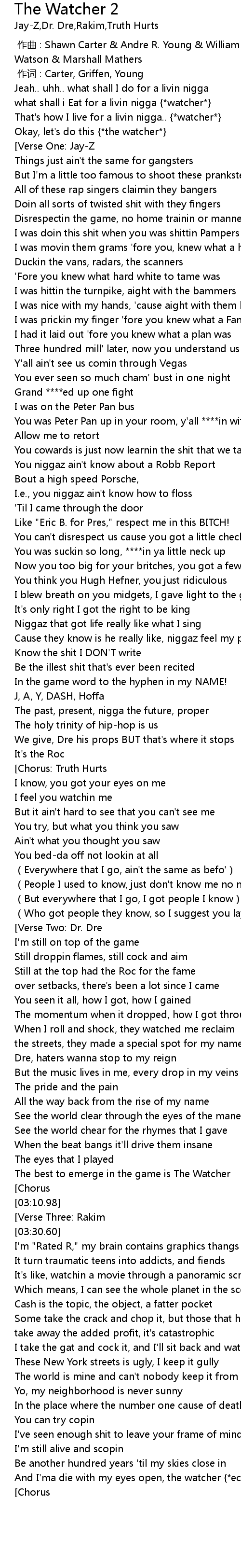 | [00:00.00] | 作曲 : Shawn Carter & Andre R. Young & William Griffin & Shari Watson & Marshall Mathers |