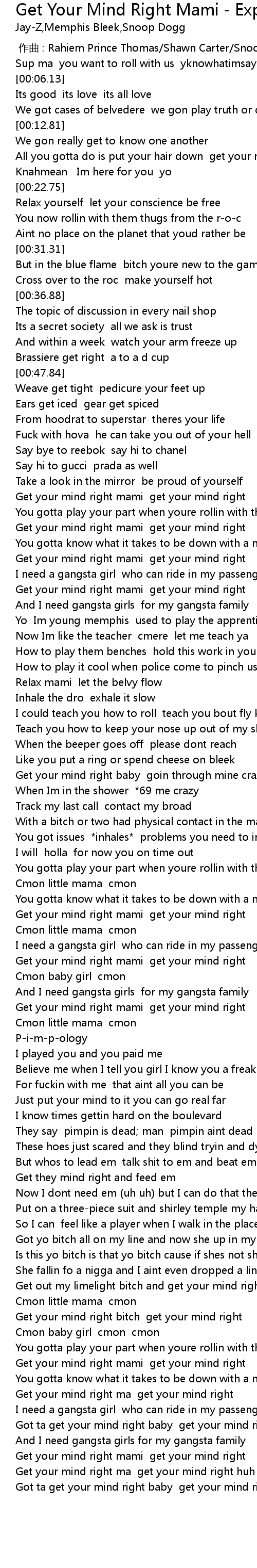 | [02:36.97] | Get your mind right mami get your mind right |