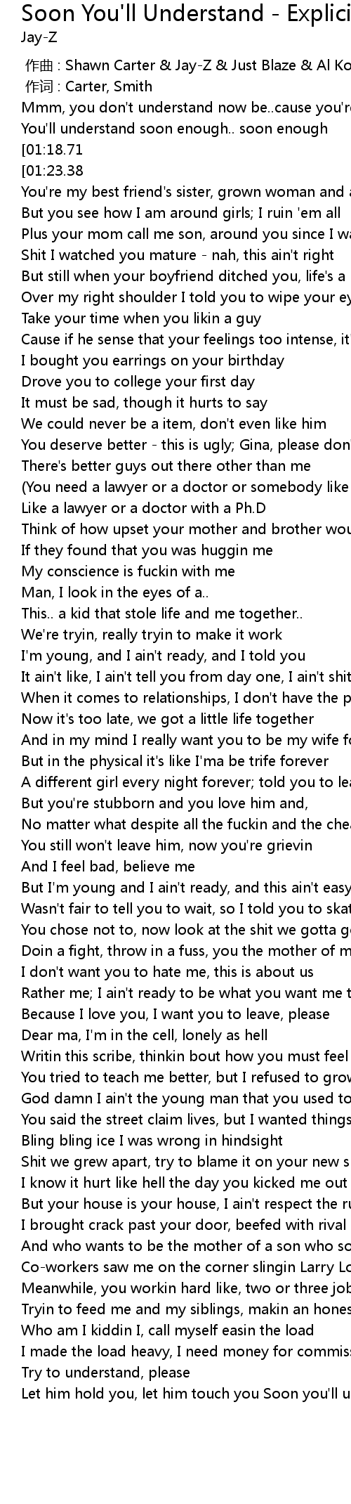 | Song | Soon You'll Understand - Explicit Version |
