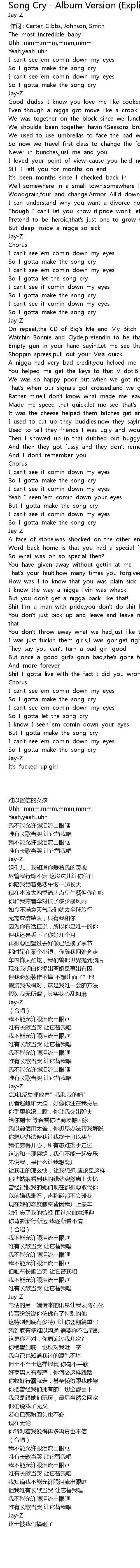 | Song | Song Cry - Album Version (Explicit) |