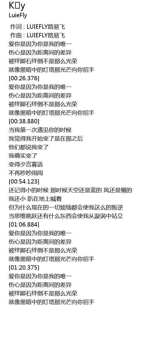 | [00:01.000] | zuo qu : LUIEFLY lu yi fei |
