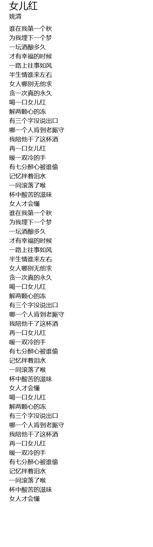 | [04:13.70] | 再一口女儿红 |