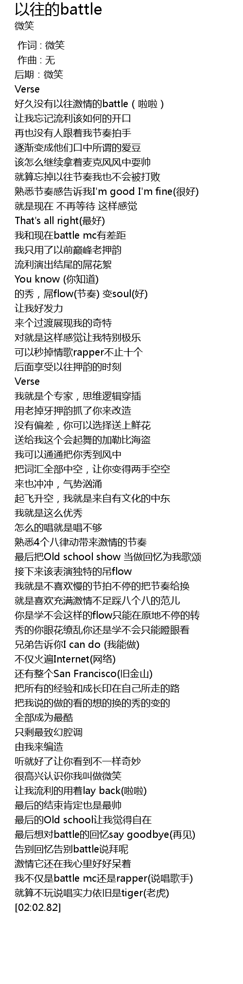 | [00:04.36] | 好久没有以往激情的battle(啦啦) |