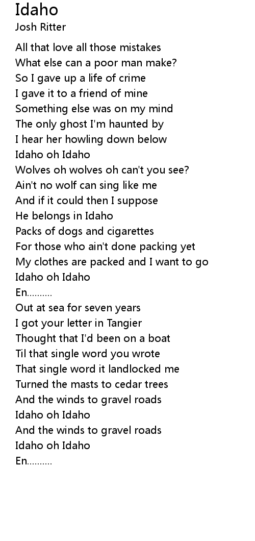 Idaho oh Idaho |