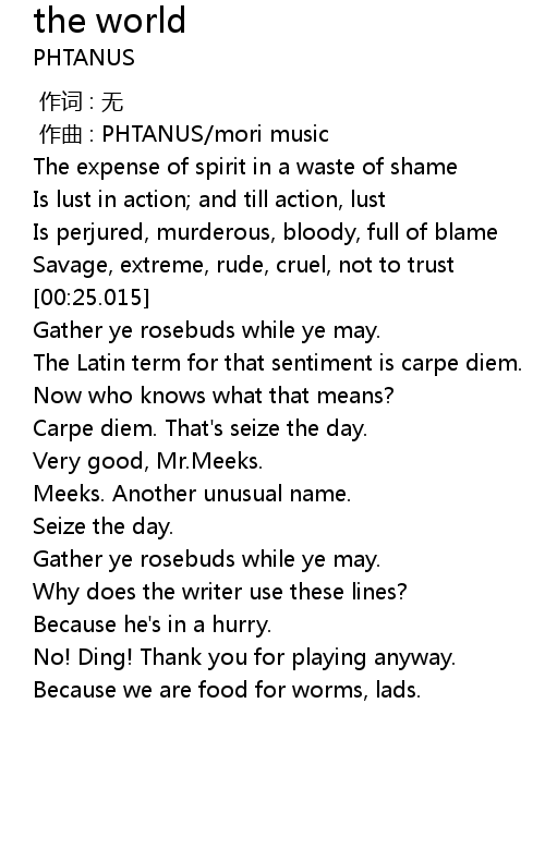 | [01:45.012] | Gather ye rosebuds while ye may. |