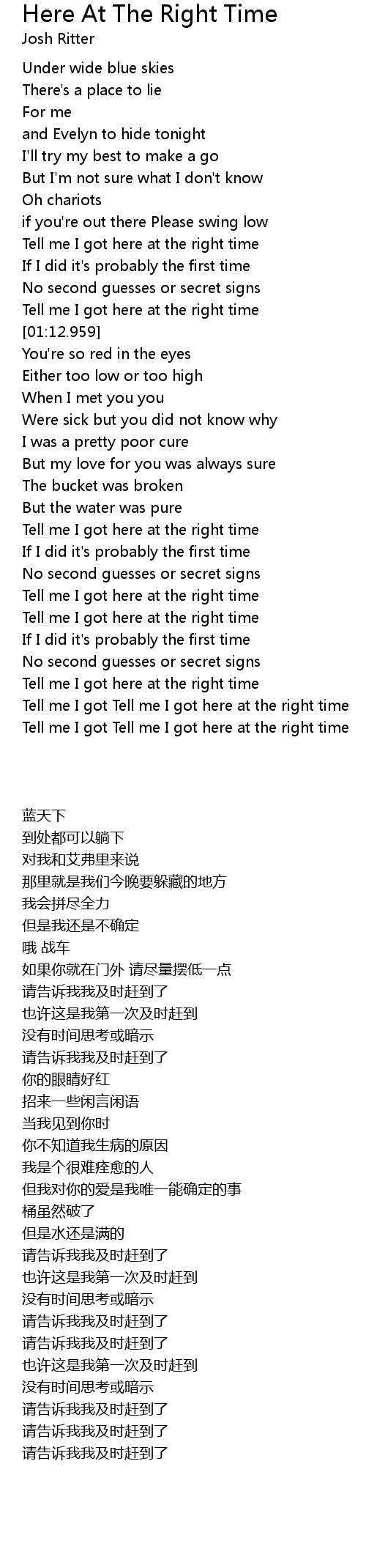 Tell me I got Tell me I got here at the right time |