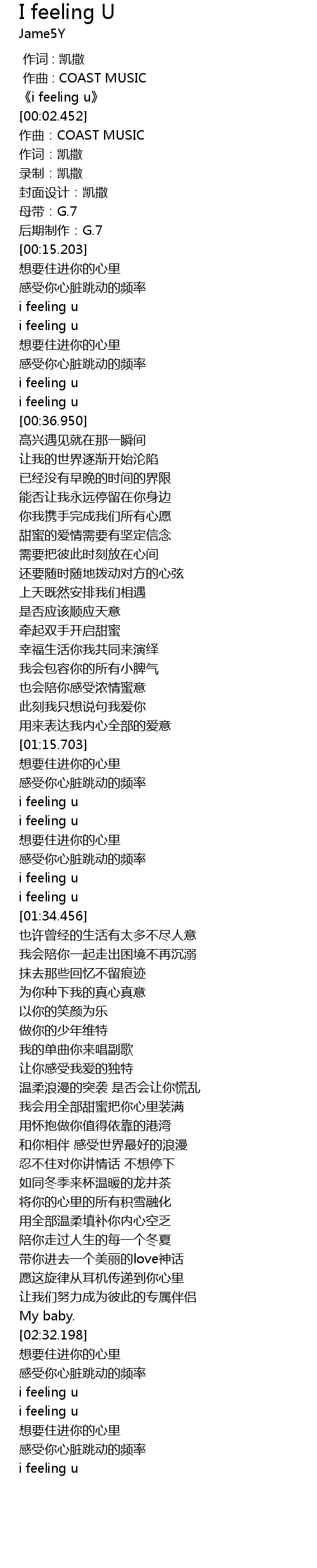 | [00:01.199] | 《i feeling u》 |