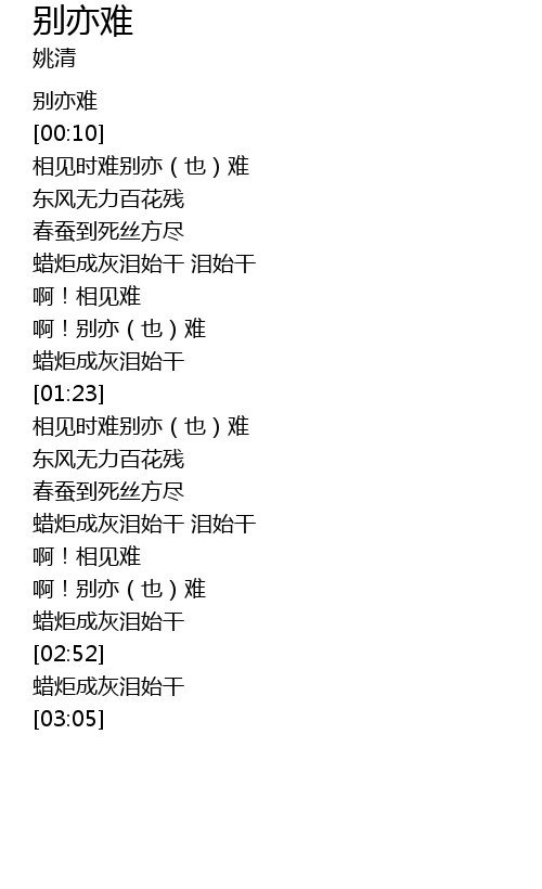 | [00:20] | 相见时难别亦(也)难 |