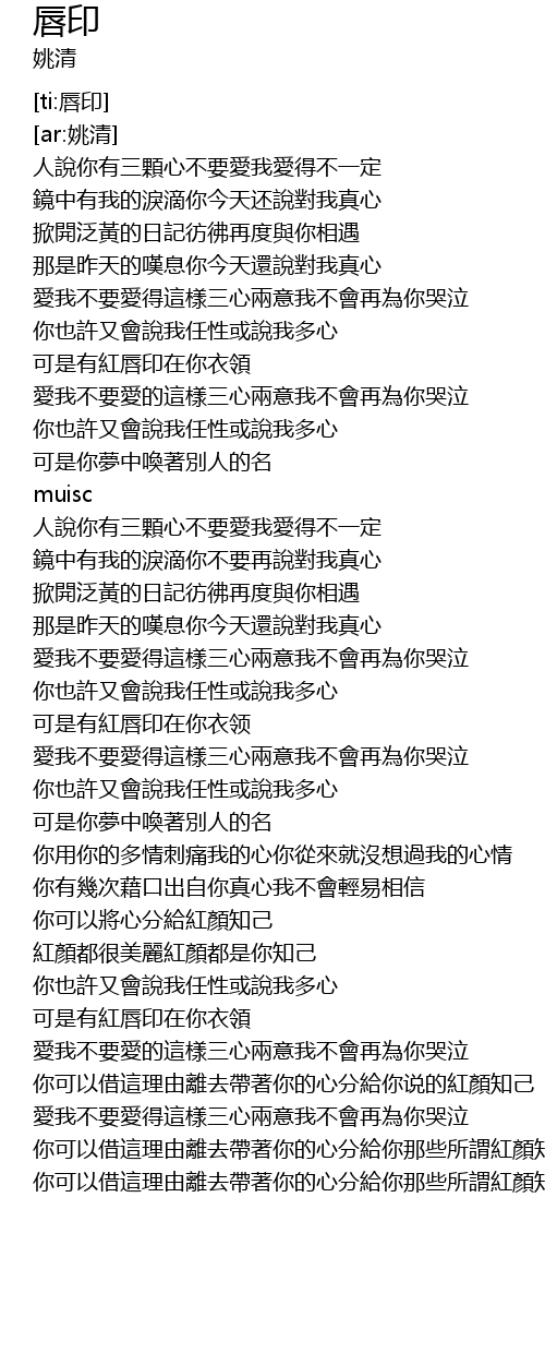 | [04:27.71] | 你可以借這理由離去帶著你的心分給你那些所謂紅顏知己 |