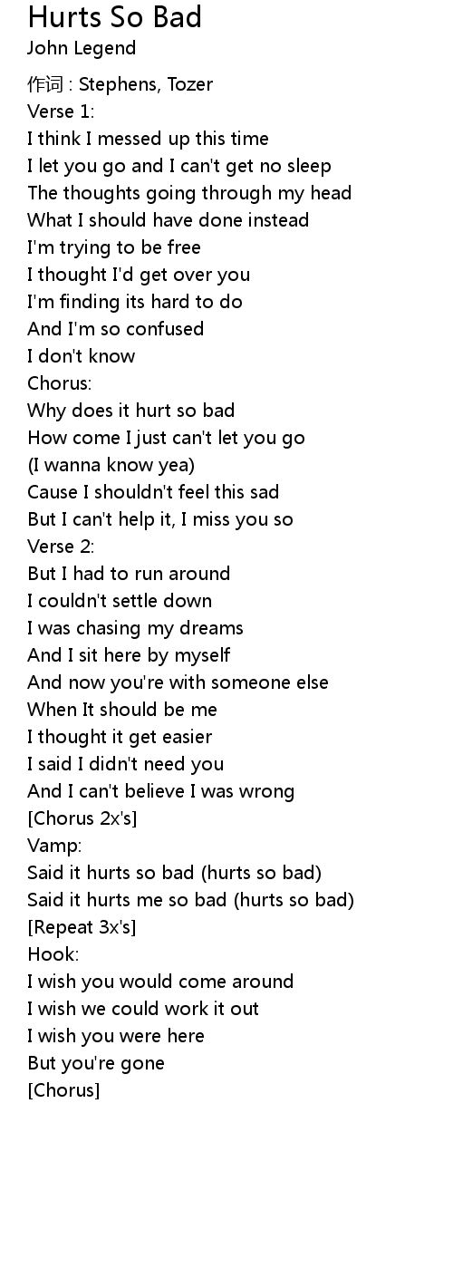 | Why does it hurt so bad | |