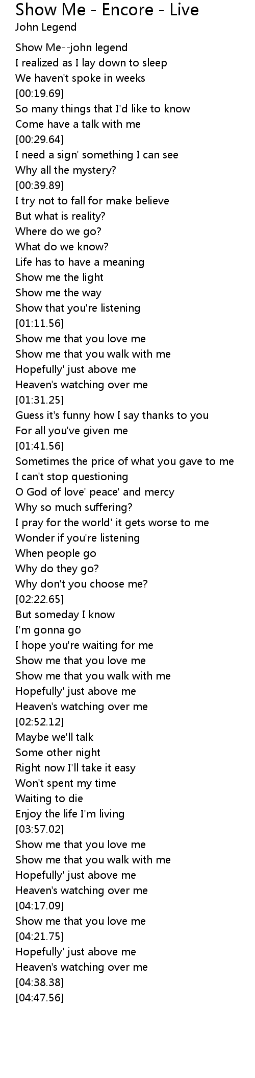 Show Me--john legend |