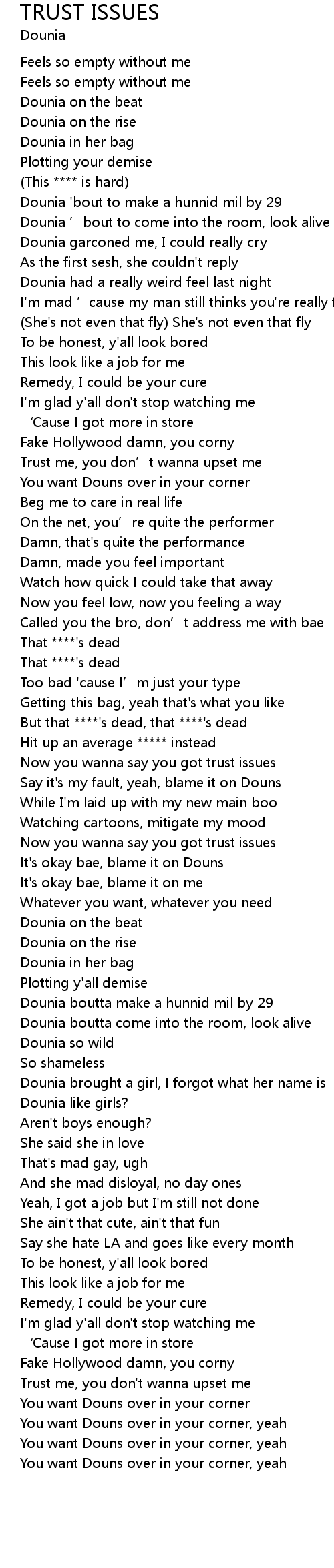 | Song | TRUST ISSUES |