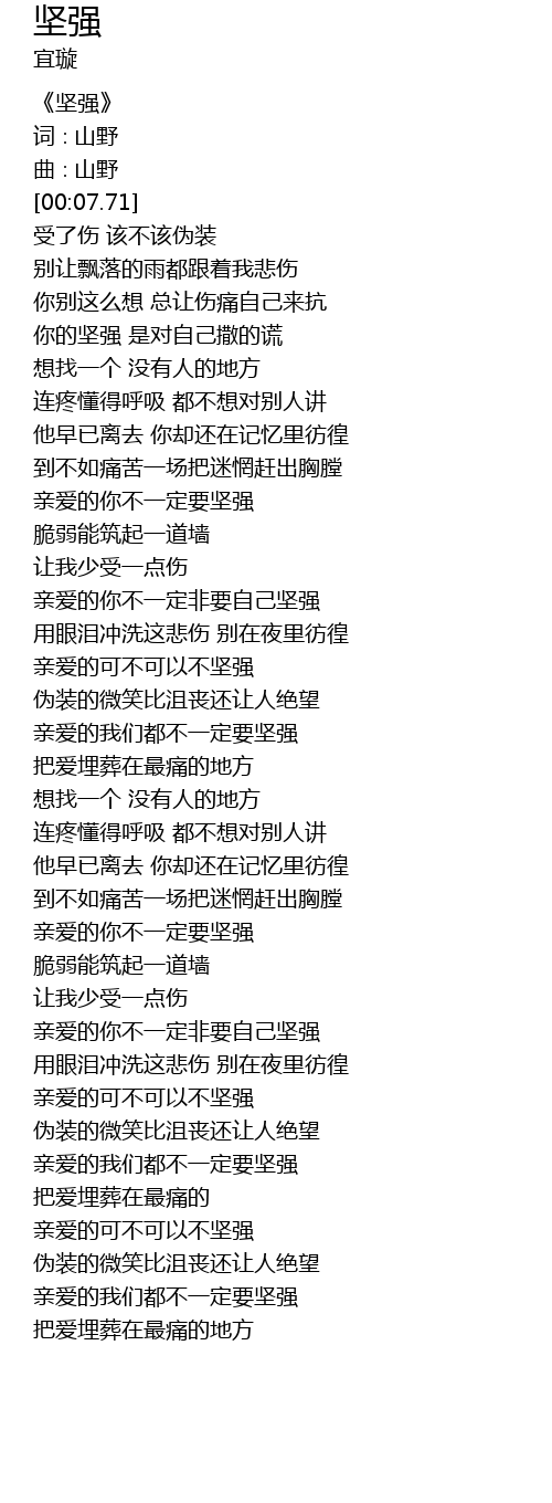 | [01:13.97] | 亲爱的你不一定要坚强 |