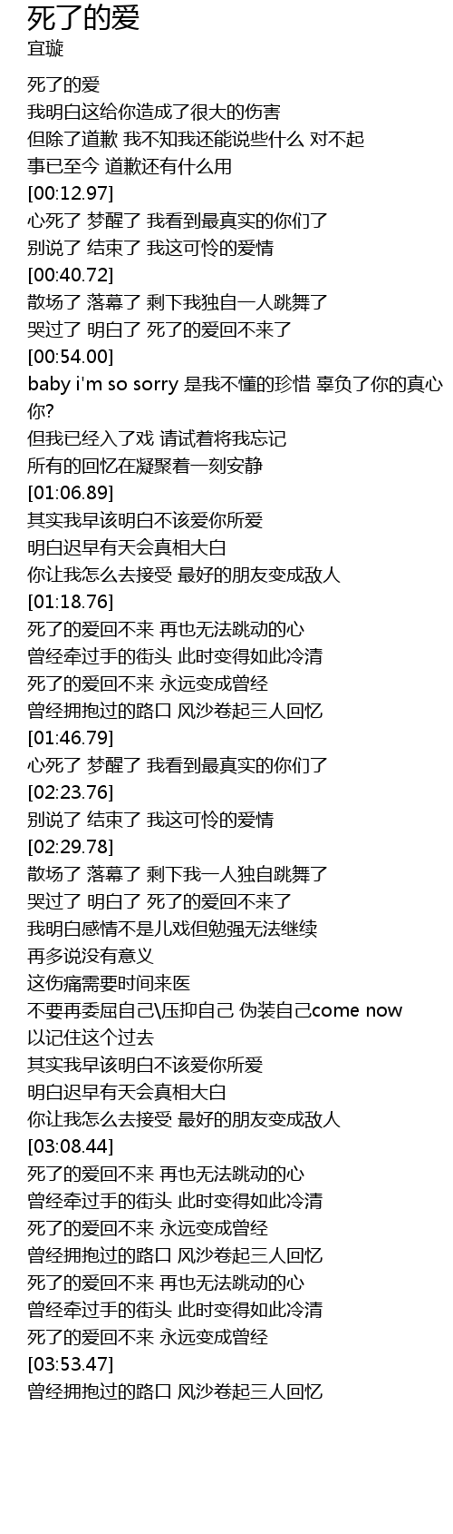 | [00:48.28] | 哭过了 明白了 死了的爱回不来了 |