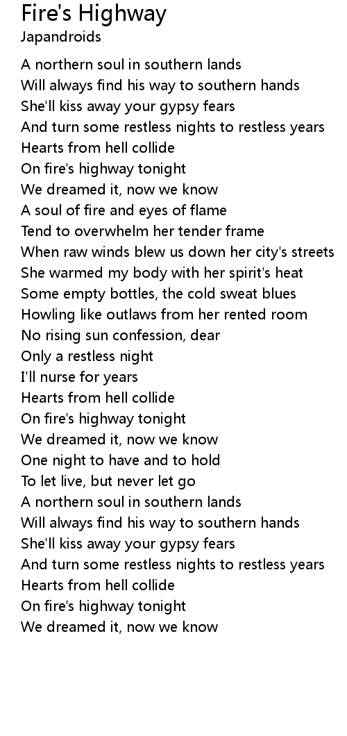 On fire's highway tonight |