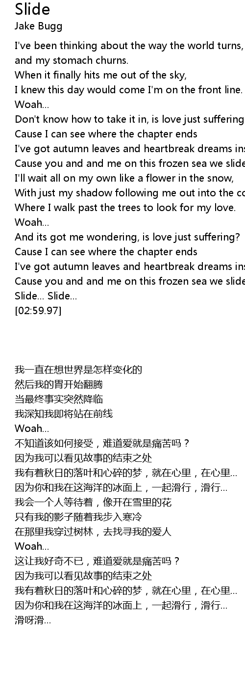 | [02:26.84] | Cause you and and me on this frozen sea we slide, slide.... |