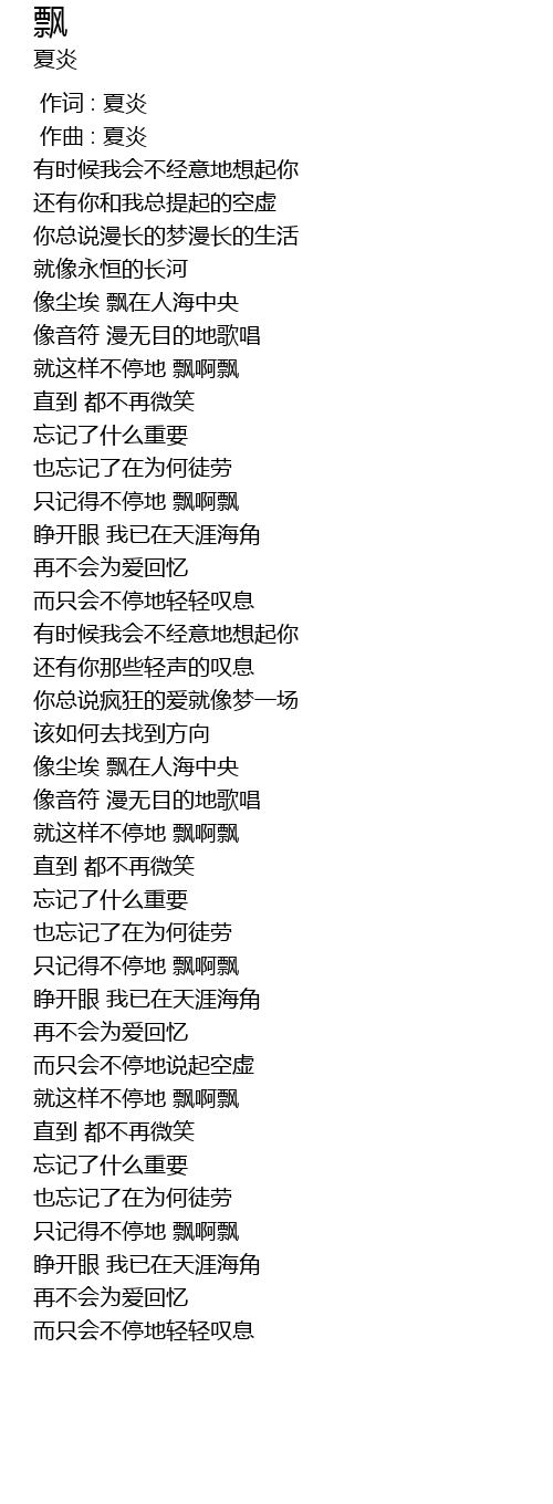 | [02:26.526] | zhǐ jì de bù tíng dì piāo a piāo |