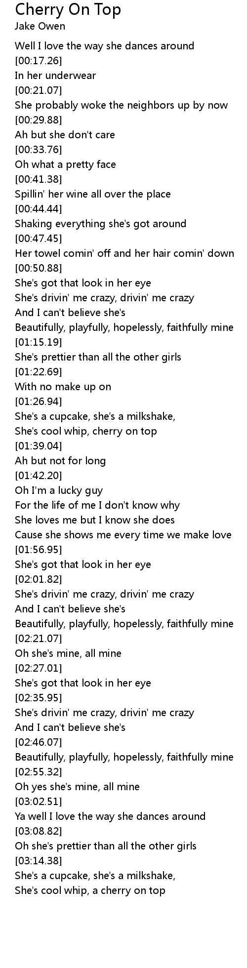 She's cool whip, cherry on top |