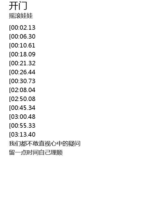 | [03:05.42][00:55.33] | 谁能有把钥匙打开你心中紧闭的门 |