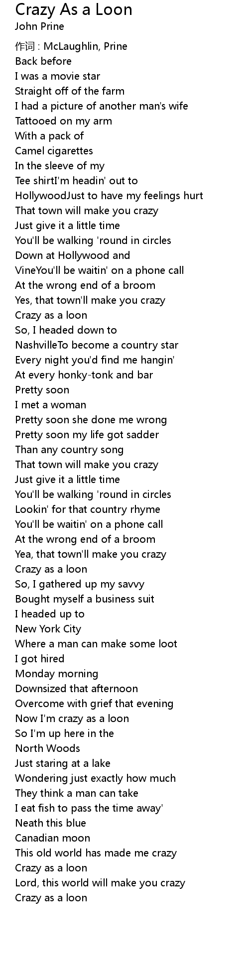 | 作词 : McLaughlin, Prine | |