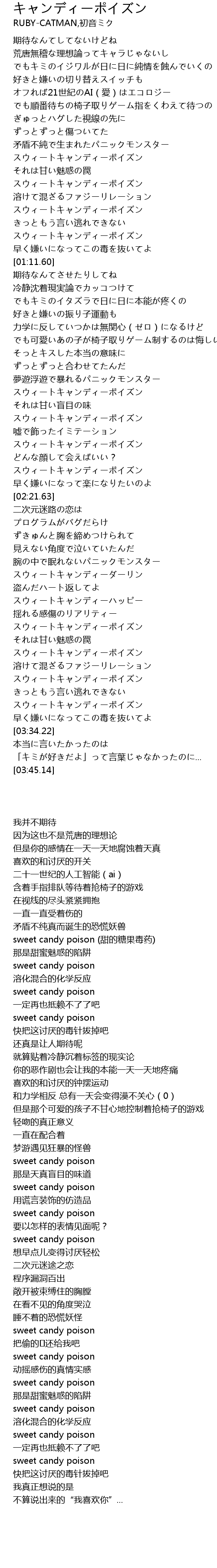 | [03:15.38] | スウィートキャンディーポイズン |