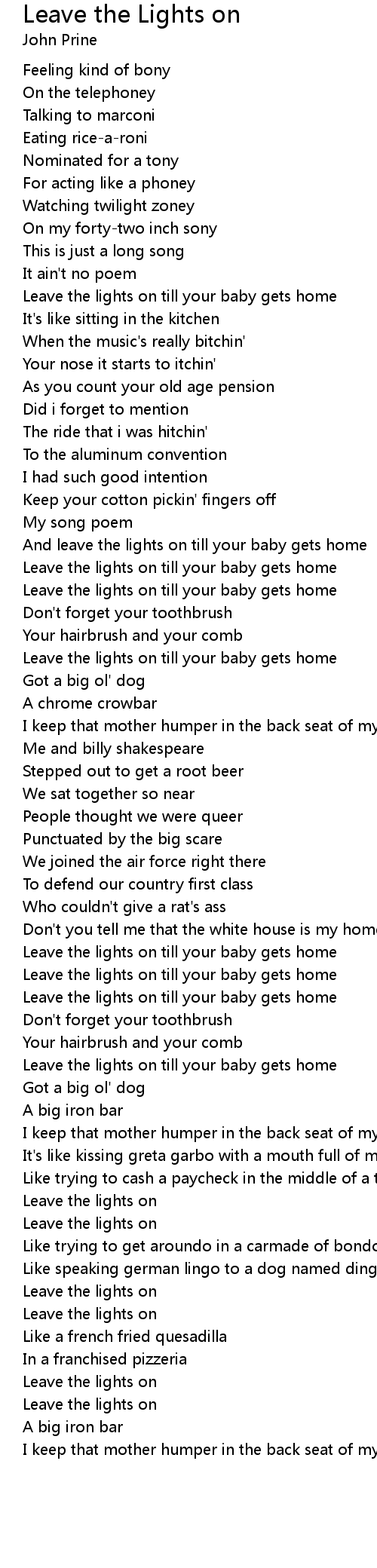 And leave the lights on till your baby gets home |