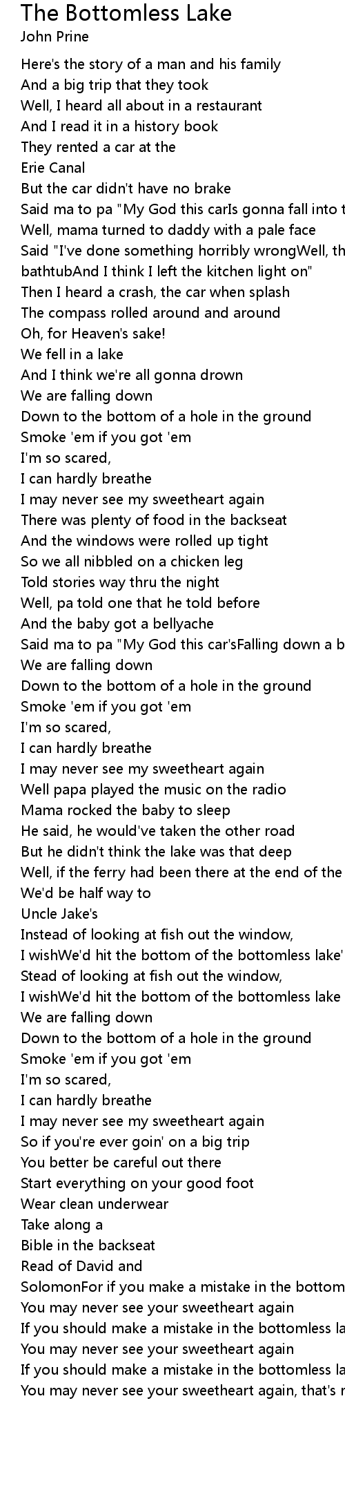 Said ma to pa "My God this carIs gonna fall into the bottomless lake" |