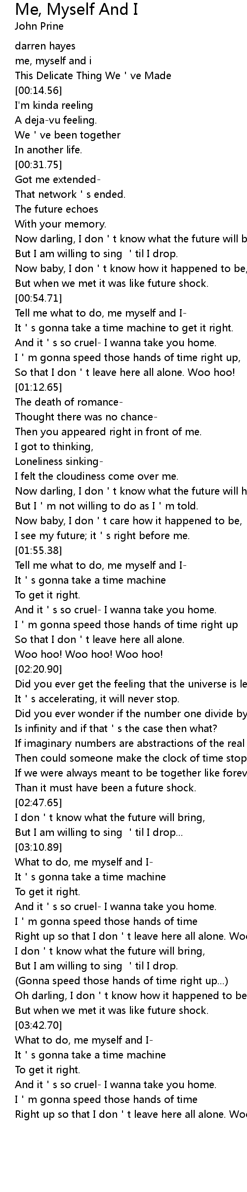 | [00:07.36] | me, myself and i |