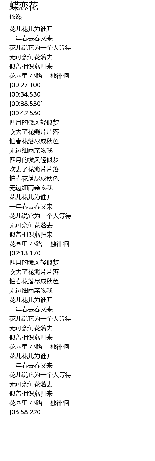 | [03:32.200] | 花儿花儿为谁开 |